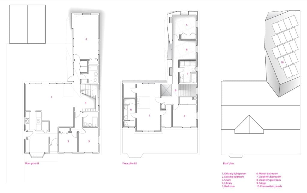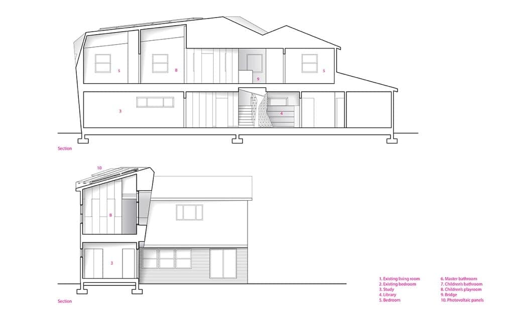 El proyecto de reforma consistió en añadir a la casa un nuevo ala. Eso dio lugar a la aparición de nuevas habitaciones y cuartos de baño. Pero una de las acciones más importantes estaba centrada en el diseño del nuevo tejado. Había que optimizar la producción de energía de los paneles solares que se iban a colocar encima. Esta instalación fotovoltaica convierte a la casa en un edificio de energía neta cero.