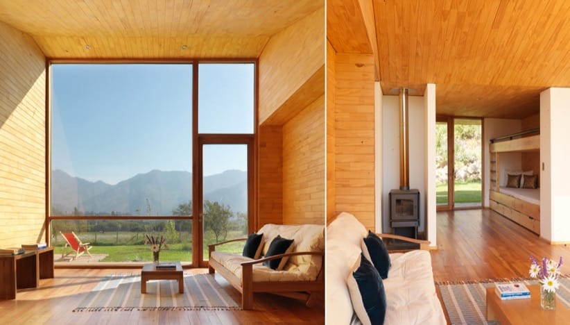 En algunas estancias se ha alterado la cubierta. Esto provoca que la altura libre interior varíe de los 2,4 a los 3,5 metros. Es una estrategia de diseño que hace que la casa tenga una fuerte relación con el paisaje. Según los arquitectos, esta solución permite maximizar las vistas hacia las montañas.