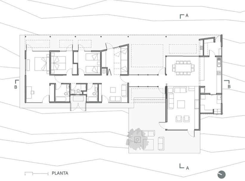 En este post se realiza un análisis a una casa aislada de una planta. Se trata de Campana House, que está ubicada en una finca de 0,5Ha, en Palmas de Ocoa (V Región, Chile). Para la construcción de este proyecto se utilizaron madera y hormigón, como materiales constructivos principales. También llamó nuestra atención por su buen comportamiento solar pasivo, y otras medidas de carácter activo.