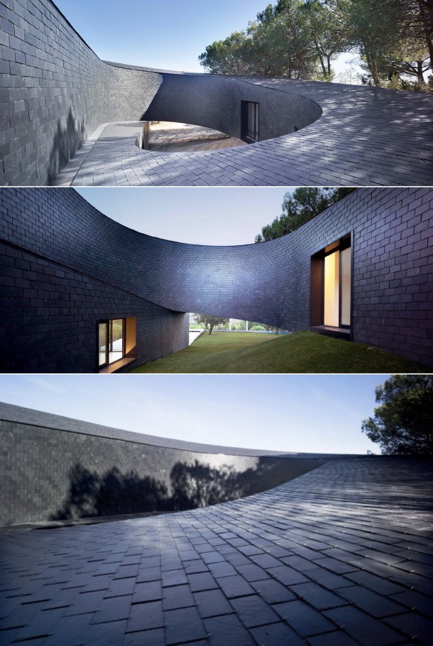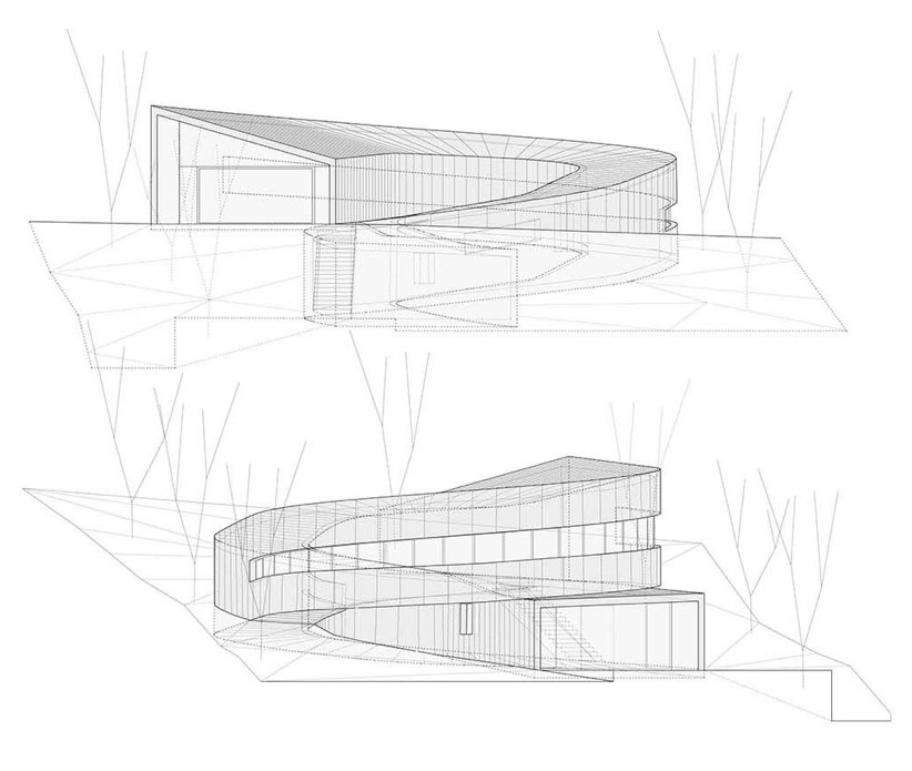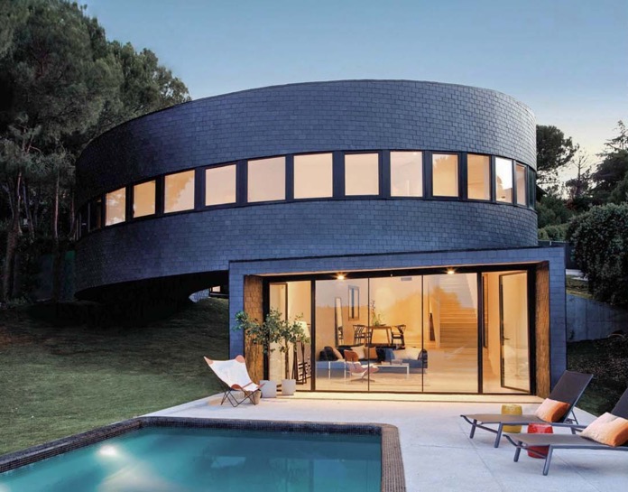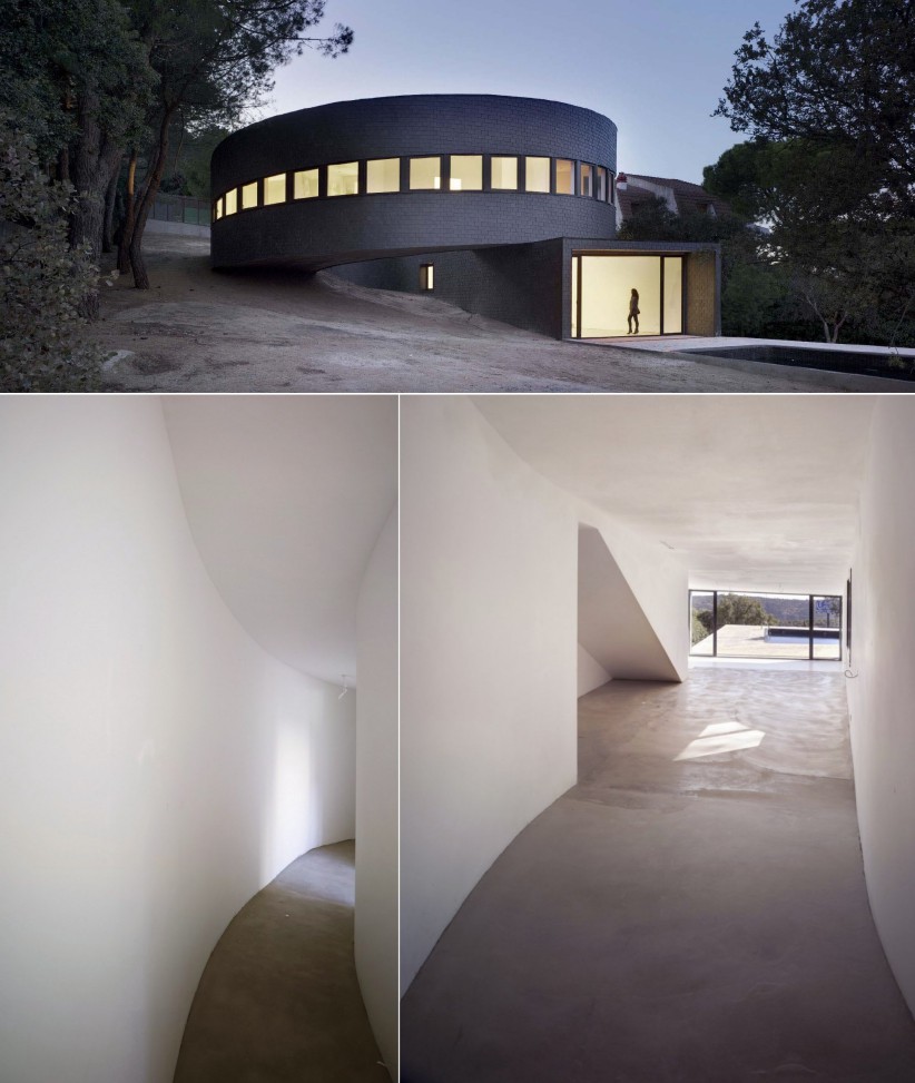 Este proyecto se ubica cerca de la casa rústica de Pablo Iglesias, en Galapagar (España). Es un lugar con buenas vistas a la sierra madrileña. El edificio en cuestión lleva el nombre de Casa 360, y se construyó para una familia numerosa. Bajo este contexto, y tomando como punto de partida las obras de ingeniería, intersecciones de autopistas, cambios de dirección…, se llegó a una interpretación literal de un diagrama de uso, haciendo que la forma fuera la propia función. Y es que en esta vivienda resulta impactante la solución que los arquitectos dieron para resolver una construcción en ladera. Aquí la casa es una helicoidal.
