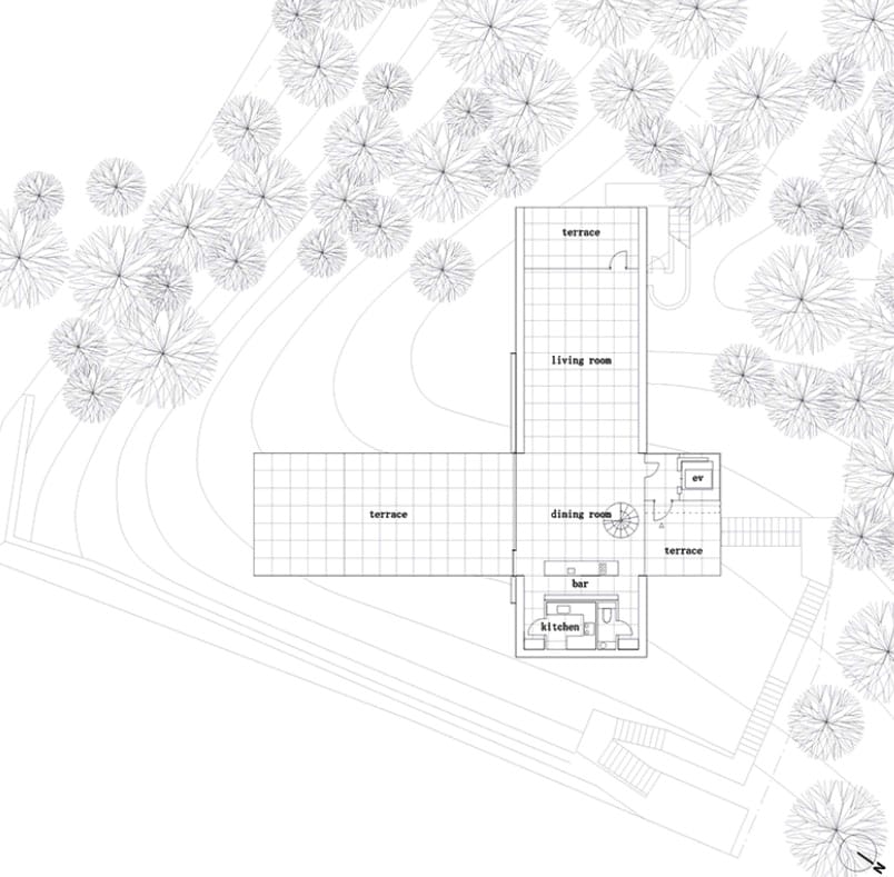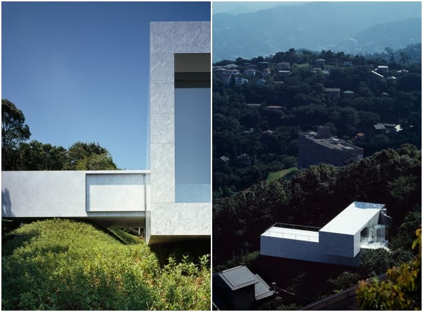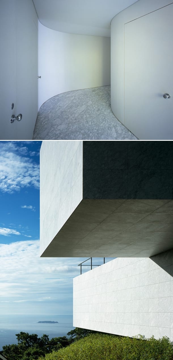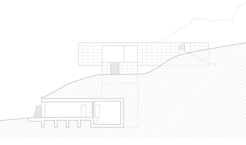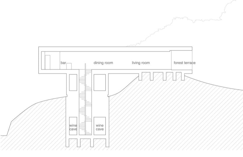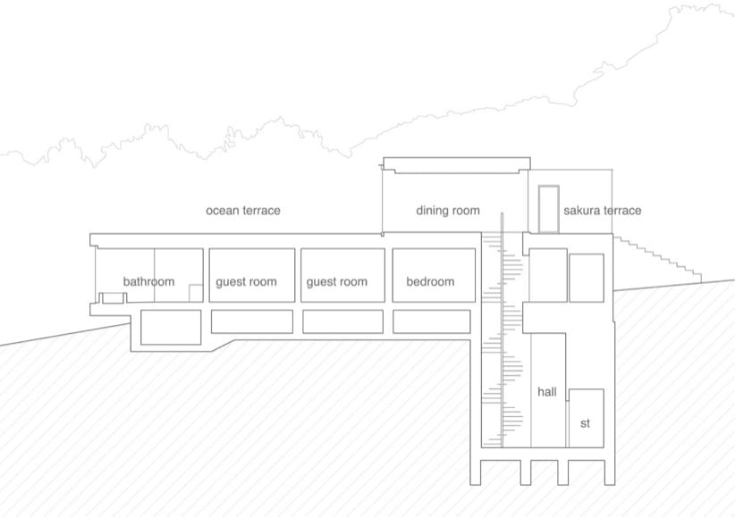 Este proyecto está resuelto con 2 prismas que se cruzan en ángulo recto. Uno de ellos está orientado al Océano Pacífico, y el otro al bosque. Es desde luego un planteamiento bastante simple, y hasta minimalista, que apenas altera el paisaje. Resulta una disposición rotunda y sólida, con algunas de sus fachadas completamente ciegas.