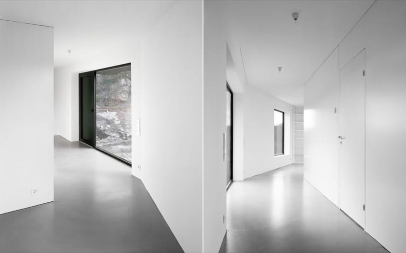El piso de hormigón pulido tiene una gran inercia térmica. Unido a las grandes ventanas, ayudará a que la casa se caliente en invierno de manera pasiva. Puede que en el verano eso sea un problema, porque no hay protecciones en las ventanas.