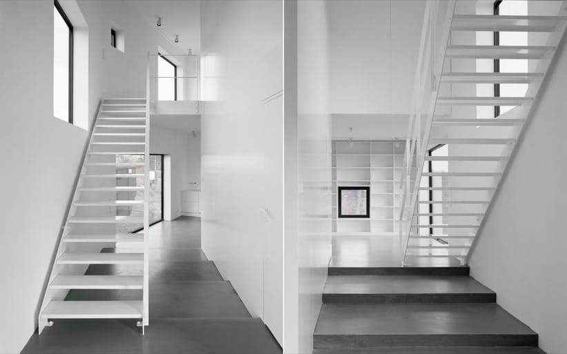 Al igual que la planta baja, el piso superior también está pintado de blanco. Se mantiene el mismo criterio con los armarios, y lo mismo ocurre con las carpinterías de las ventanas: en negro.