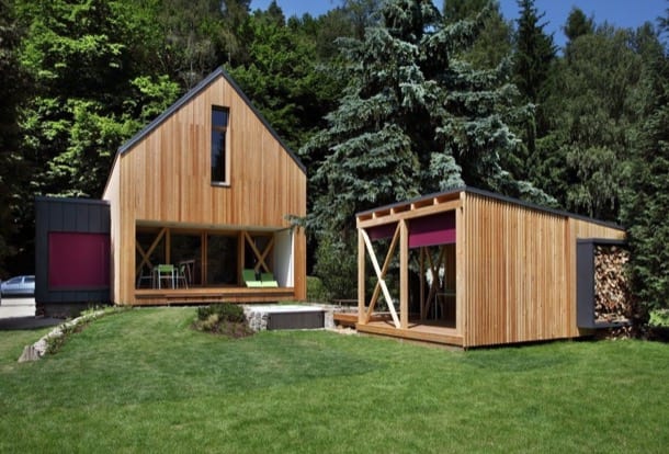 Los muros de piedra caliza rugosa ponen quizás la nota más discordante en este proyecto. Tal vez porque se ven demasiado artificiales, aunque podía haber sido peor si se hubiera utilizado un color oscuro. Los arquitectos los emplearon para contrastar con la horizontalidad del edificio, y para alojar en ellos las chimeneas de la casa.