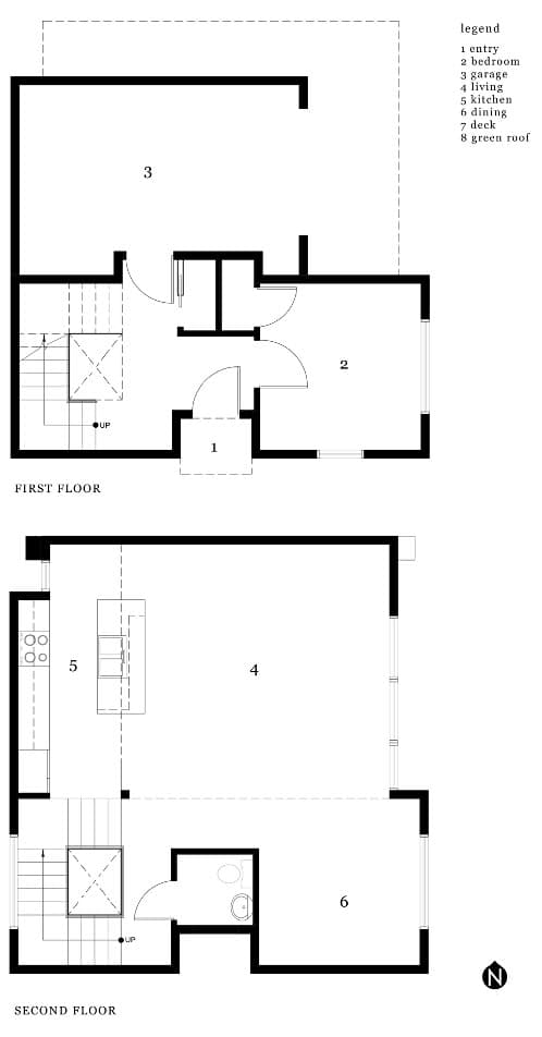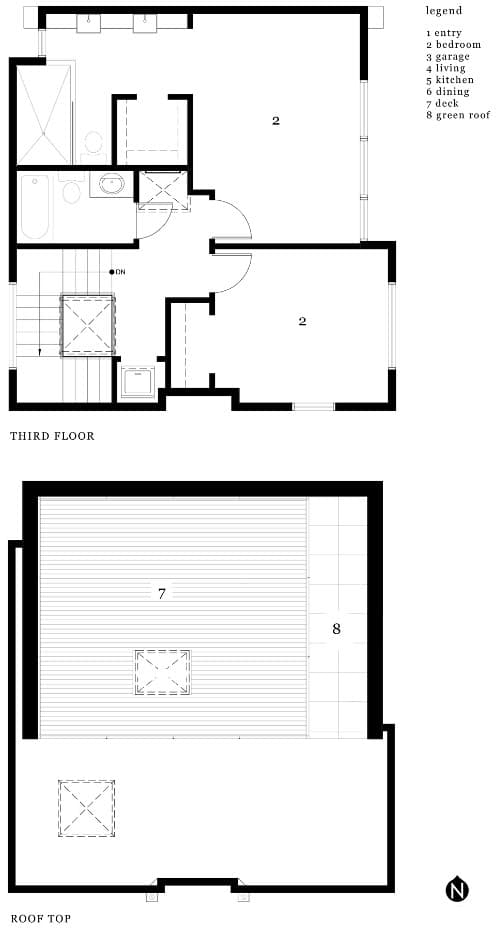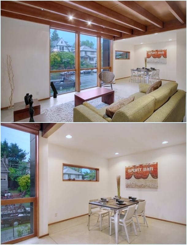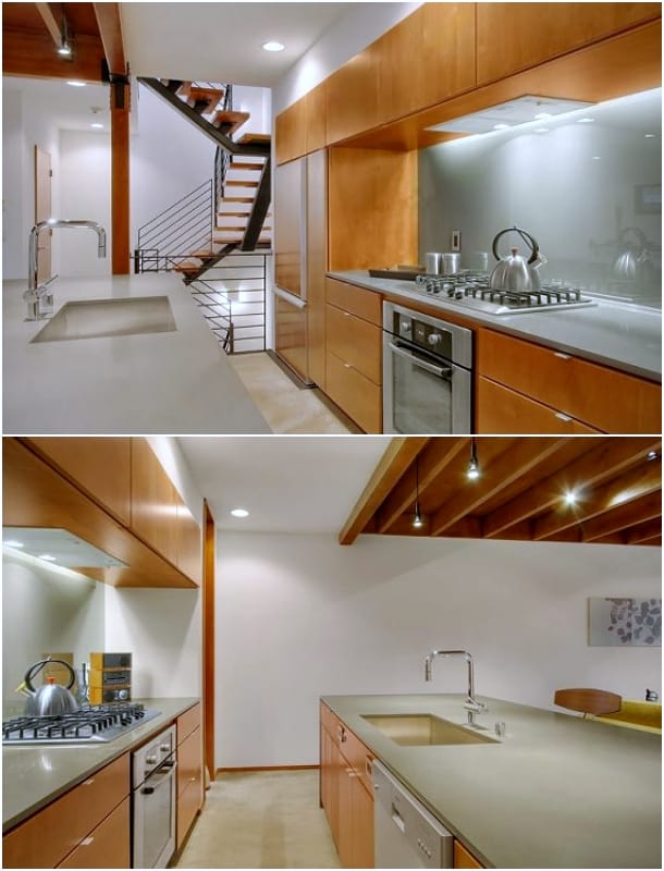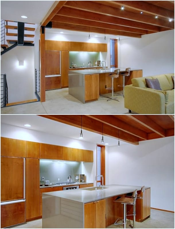 Estas fotos y planos corresponden al proyecto de una casa de tres plantas, con una superficie total de 150m2. Se construyó en el área de Capitol Hill de Seattle (Washington, EE.UU.). Es la Residencia 12th & John, y destaca por ser un moderno edificio de acero, madera, y vidrio.