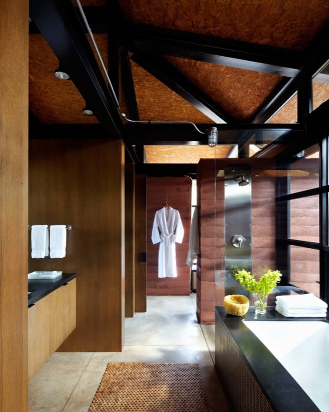 El tercer volumen de la Slaughterhouse Beach House tiene que ver con el dormitorio principal. Es una suite en toda regla, que dispone de dos vestidores, y un gran cuarto de baño. Incluye unas dependencia anexas, que presumiblemente se traten de un gimnasio y una sala de estudio.