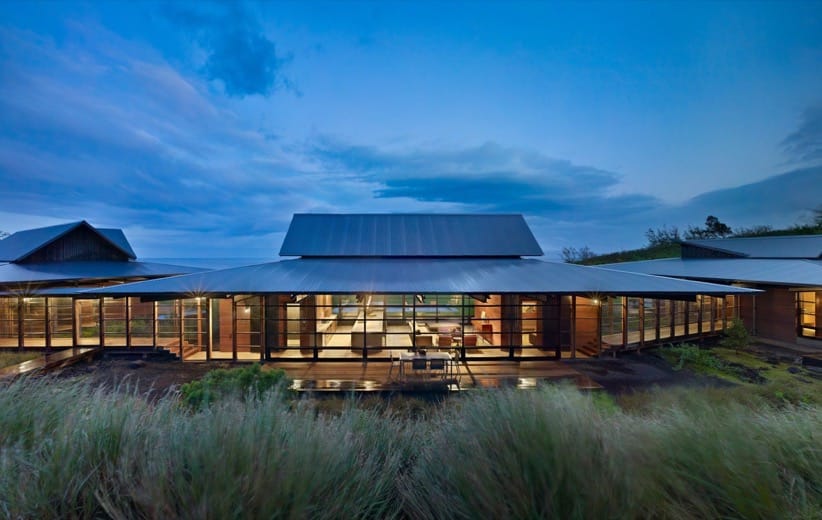 Los pabellones se comunican mediante unas galerías que están completamente acristaladas. Son corredores protegidos que aportan amplias vistas hacia el paisaje de Hawái.