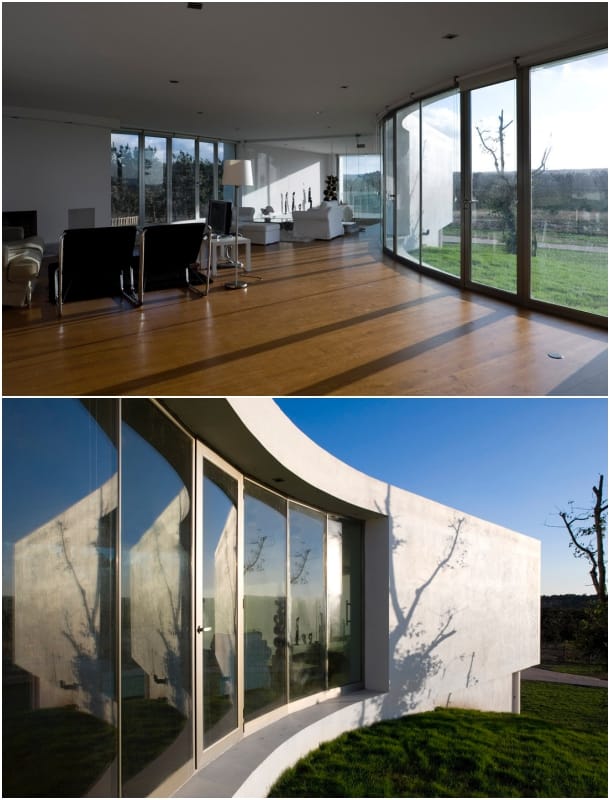 La sala de estar es el lugar con las mejores vistas de toda la casa. Para oscurecer las estancias la vivienda tiene lienzos flexibles y enrollables en la mayoría de sus ventanas; en otras hay paneles deslizantes en fachada, como es el caso de los dormitorios.