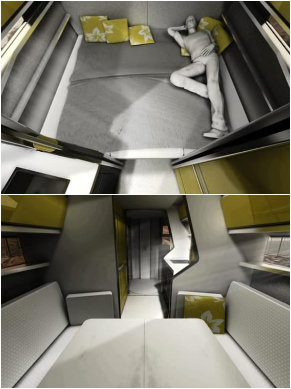 Si su exterior ya es atractivo por sus líneas deportivas, dentro encontramos un estupendo aprovechamiento del espacio. Los laterales de la casa están articulados en la parte delantera, permitiendo un giro para que pueda aumentar de tamaño.