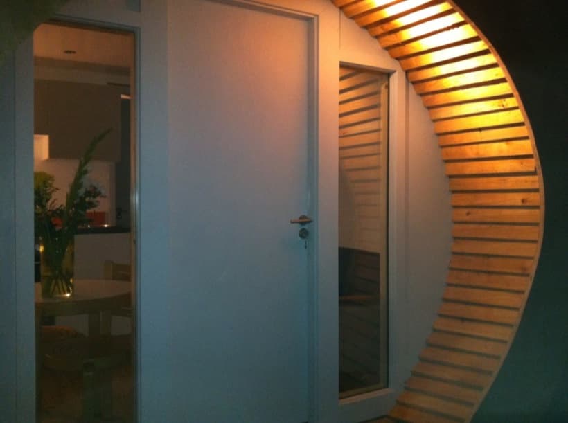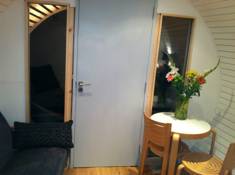 Pero lo que más nos ha fascinado de esta pequeña casa es que por dentro es mucho más grande de lo que aparenta por fuera. El vídeo muestra además que en la parte trasera hay otra puerta. La carpintería de esta pequeña casa tiene triple acristalamiento, y todo el exterior está revestido de madera. Desconocemos la existencia de otras características sostenibles.
