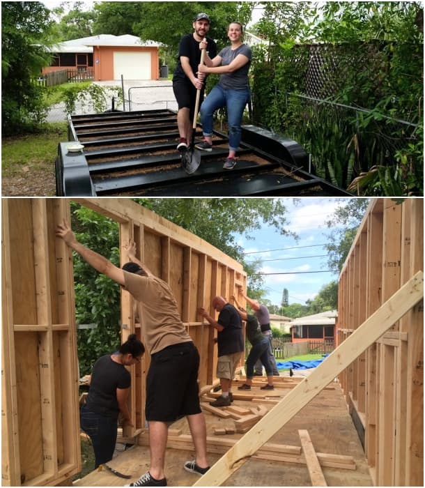 Stephanie no tenía ninguna experiencia previa, así que dio el primer paso comprando el remolque y los planos en Tumbleweed, un conocido sitio dedicado a casas diminutas. Creó un diseño y lo adaptó al remolque de 20 pies, luego empezó a construirlo en el patio de su abuela, con la ayuda de familiares y amigos.