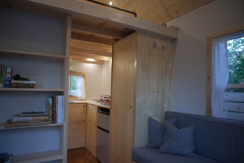 En este artículo conoceremos el interior de una casa móvil, donde el propietario era diseñador de páginas webs. Grabó un vídeo para hacer un recorrido por fuera y por dentro, y enseñárselo a gente interesada. Se trata de Tiny Midwest, una pequeña estructura montada sobre un remolque. El proyecto tiene que ver con esas casas de madera construidas para personas capaces de desenvolverse en poco espacio. Lógicamente eso implica vivir con menos posesiones, pero también con menos gastos, y sobre todo con escasa huella de carbono. Esta pequeña casa móvil está ubicada en el patio trasero de una vivienda convencional, y durante las vacaciones se convierte en el hogar de toda la familia.