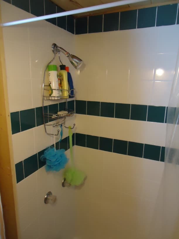El cuarto de baño tiene inodoro y ducha, y está separado de la cocina. Esa disposición resulta bastante acertada, y más teniendo en cuenta que en esta casita vive una pareja. Pero creemos que se ha sacrificado demasiado espacio en la cocina, sobre todo el destinado para cocinar. Si se observa con detenimiento las fotos, veremos que justo detrás del sofá hay un módulo con estantes deslizantes. Esta idea es buena para acceder a determinados utensilios y alimentos, pero nefasta como soporte de la hornilla eléctrica, o el microondas. Puede que para un uso esporádico sea lo más adecuado, pero no para un uso diario (como es el caso). La mesa para comer, situada a espaldas del sofá, tampoco es el lugar más apropiado cuando alguna bebida se derrama.
