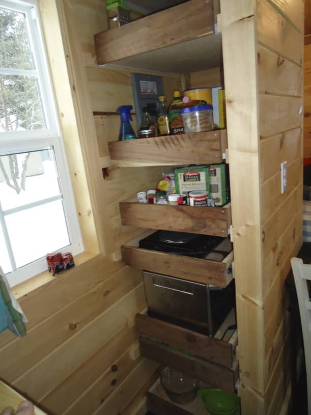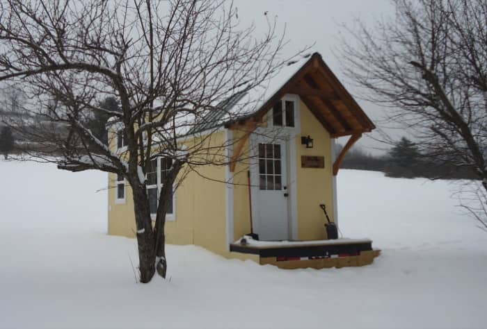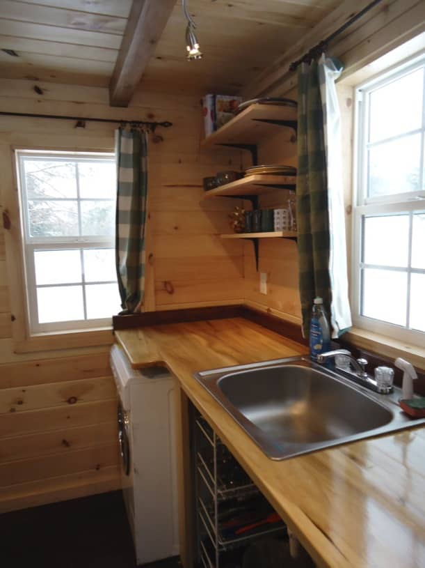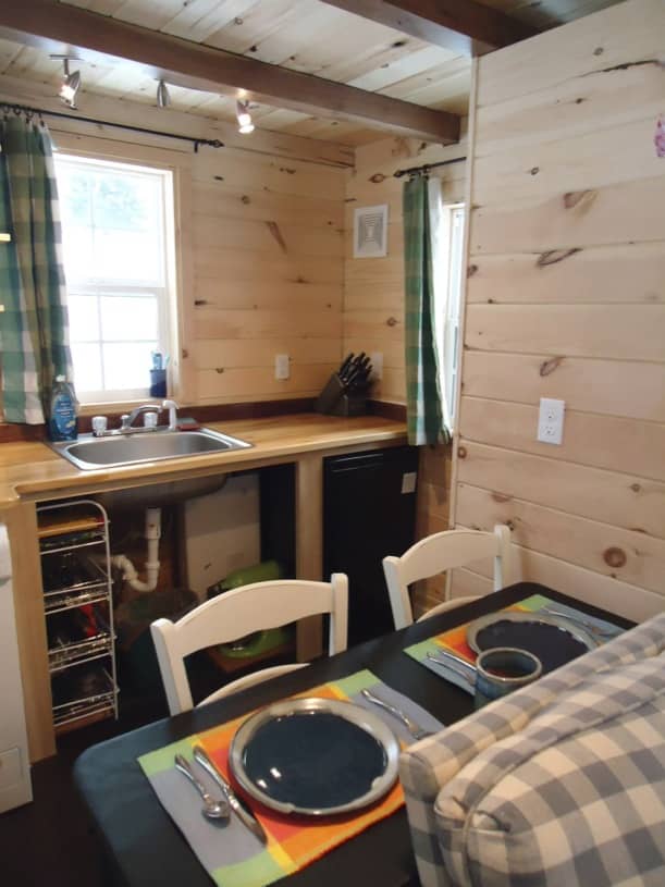 Estas fotos tienen que ver con la casita Keep on The Sunny Side, para una pareja de Pennsylvania (Jake y Annelise). Fue construida por Brevard Tiny House, una pequeña empresa familiar ubicada a 35 minutos al sur de Asheville (Carolina del Norte), que se dedica a la producción de casas diminutas construidas sobre remolque. Recordemos que ésta es una alternativa utilizada por gente que busca una solución más barata y sostenible que la de una vivienda convencional.