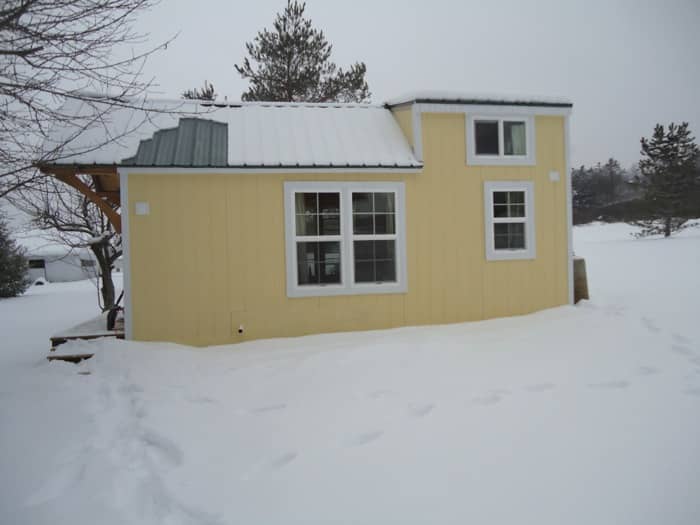 El diseño Keep on The Sunny Side corresponde a la primera tiny house que fabricó esta empresa. Es una casa montada sobre un remolque de dos ejes (7.32 x 2.6m), y desde que se inició la recogida de materiales, hasta que se terminó, pasó un mes y medio. Su estructura es de listones de madera de nogal y arce, rematada con cubierta a dos aguas de dos tramos; uno de ellos tiene menor pendiente, y está situado justo encima del altillo, donde está el dormitorio.