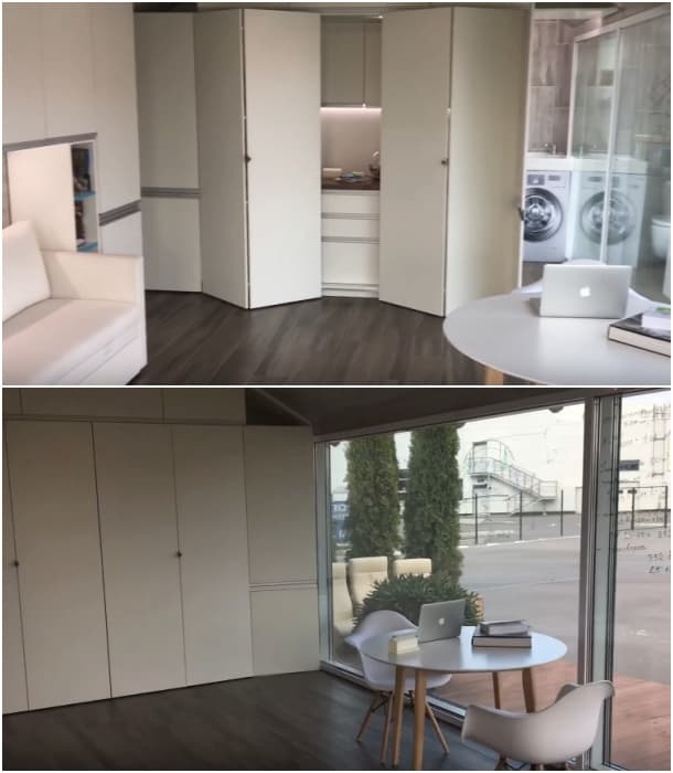Para demostrar que este proyecto iba en serio, Max construyó un prototipo, y grabó el siguiente video. En él se puede apreciar el gran acabado que tiene esta pequeña casa autosuficiente, y algún que otro detalle interesante, como la combinación de lavabo con lavadora.