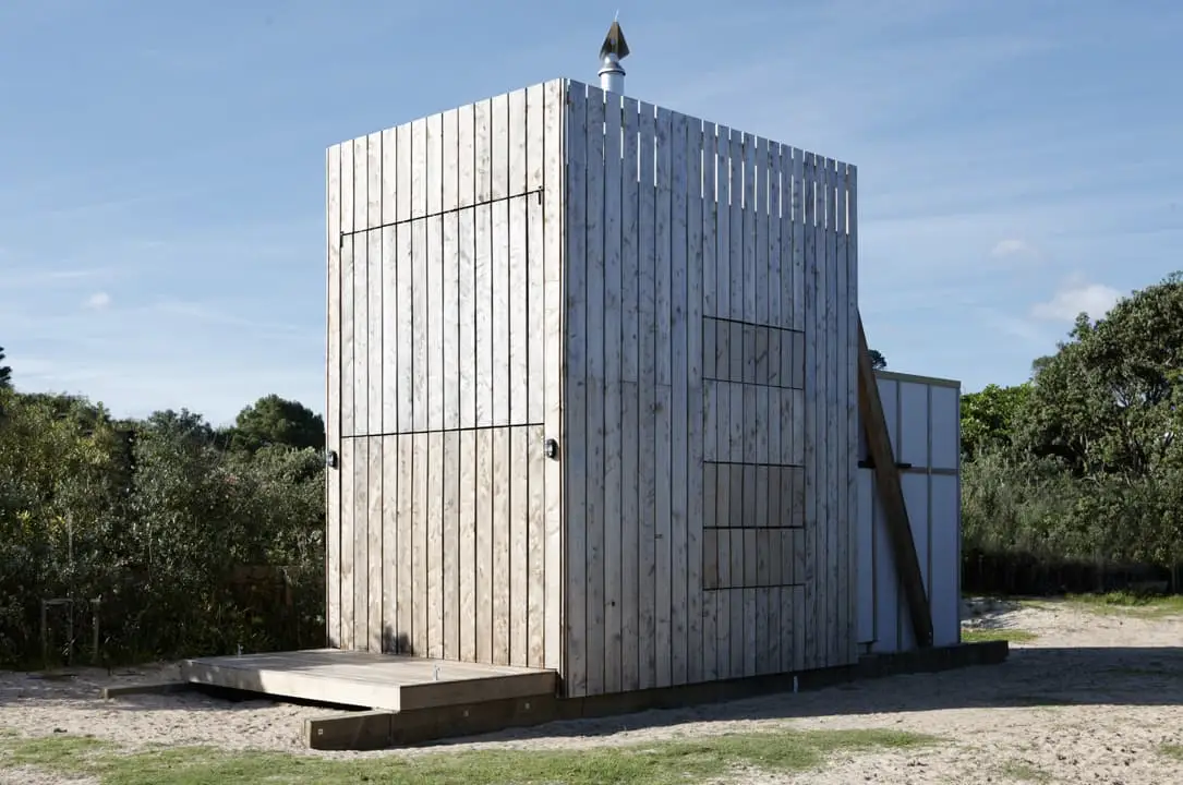 Este artículo está dedicado a la construcción Whangapoua Sled House. Se creó para las arenas blancas de las playas de la Península de Coromandel (Nueva Zelanda). Pero debido al cambiante paisaje costero, la moderna casa tenía que ser móvil. Por eso se asienta sobre unas vigas de madera, para que pueda ser remolcada por las dunas como un trineo. Además de esta singular característica, esta casa de vacaciones de 40m2 queda completamente cerrada cuando no está en uso. Proporciona una imagen que se funde en el paisaje, gracias a su revestimiento de madera. Y se integra bien en la playa, como un cobertizo para surfistas, o torre de observación.