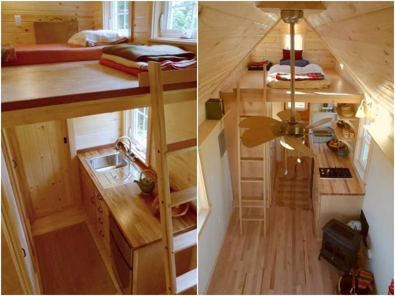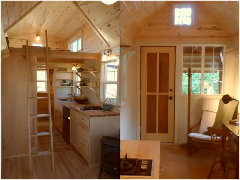 Estas fotos son de la mini casa de madera Ynez. Está hecha por Oregon Cottage, uno de los constructores más serios que han pasado por nuestro blog. Produce a partir de diseños de su catálogo, pero también se adapta a las necesidades del cliente.