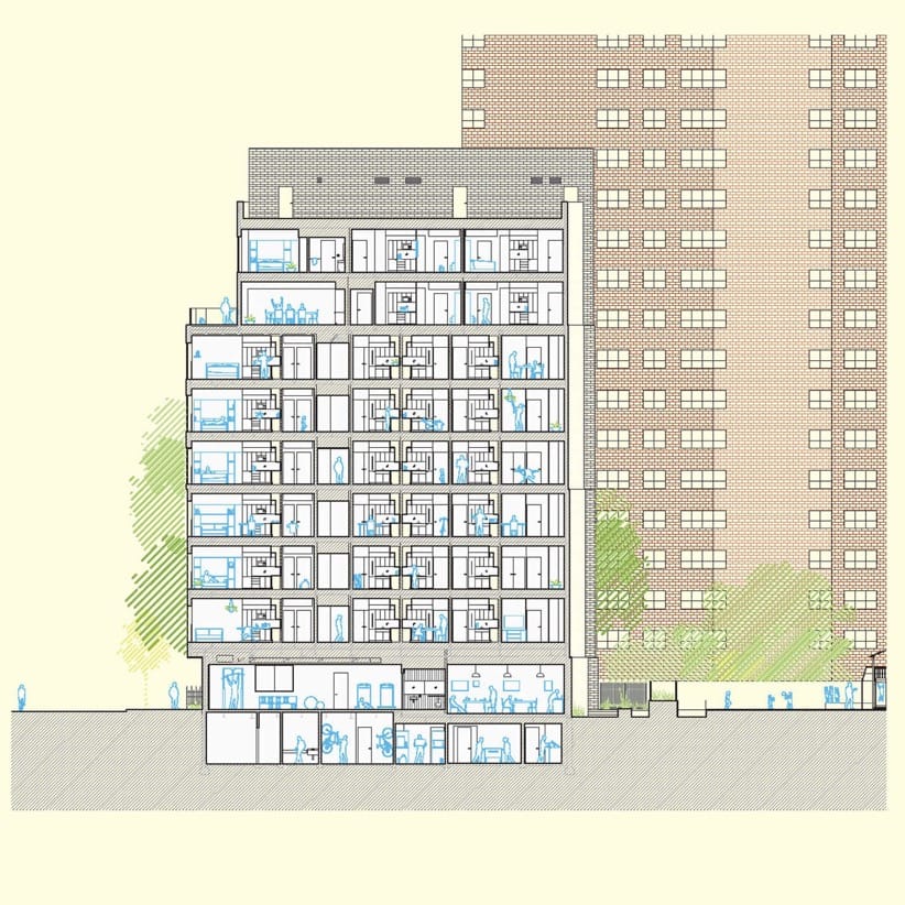 Los trabajos con los módulos dieron comienzo en 2014, y las obras en el sitio se iniciaron en marzo del siguiente año. Pocos meses más tarde se finalizaron, y empezaron a llegar los primeros ocupantes (2016), pagando un alquiler mensual de $950. Esa cantidad es bastante baja, pues el precio medio del alquiler de un estudio en Manhattan ronda los 3.400 dólares.