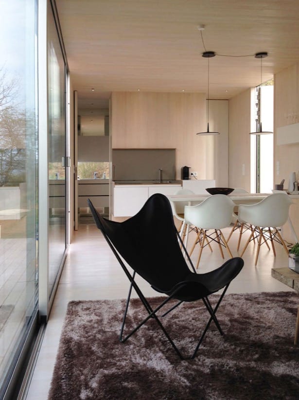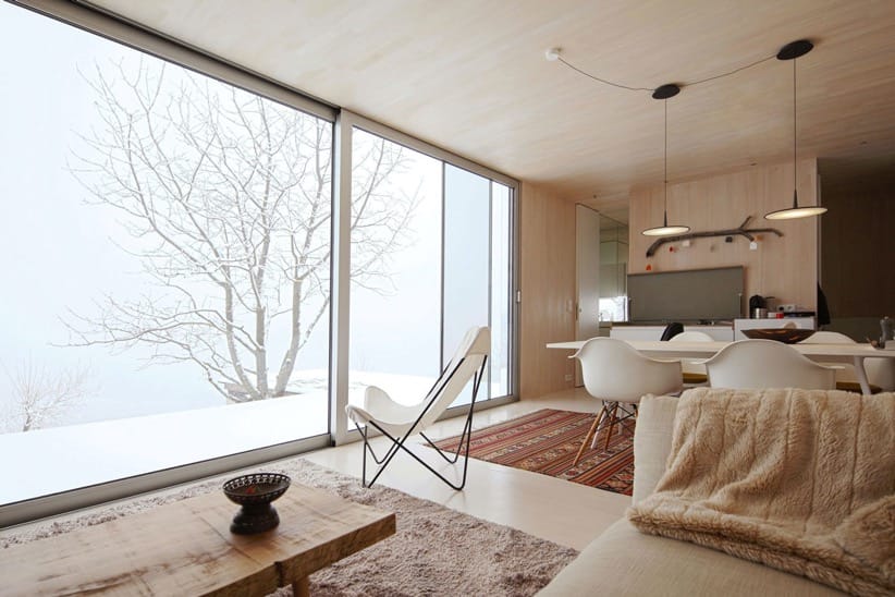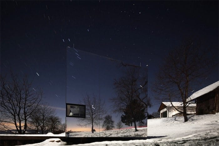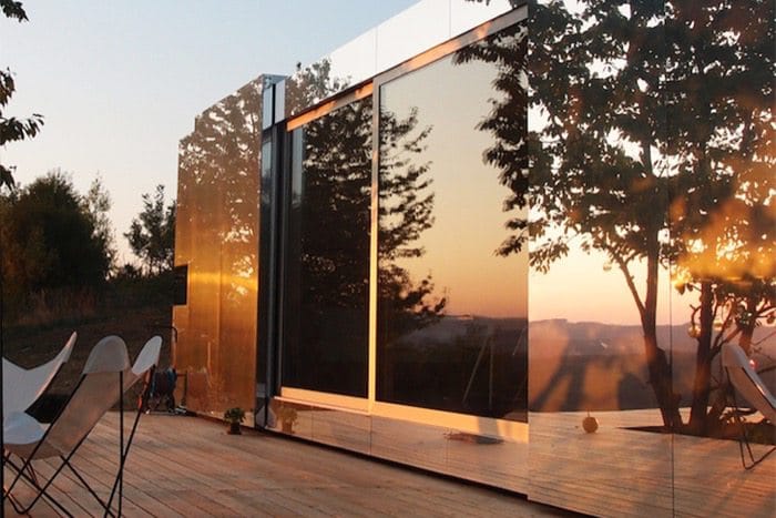 Estamos ante un modelo de casa llave en mano realizada con una estructura prefabricada de madera. Se puede colocar en cualquier sitio, y su tamaño (14,7 x 3,7m) hace que sea fácil de transportar por carretera. Tanto los acabados interiores como exteriores pueden estar definidos por el cliente (a partir de un catálogo). Pero es su revestimiento espejo el que más atención despertó entre los admiradores de la arquitectura prefabricada. Y es que el reflejo de esa fachada facilita bastante la integración del edificio en el entorno. Aquí hay que añadir que suponemos viene con película infrarroja que impide que la aves choquen contra ella.