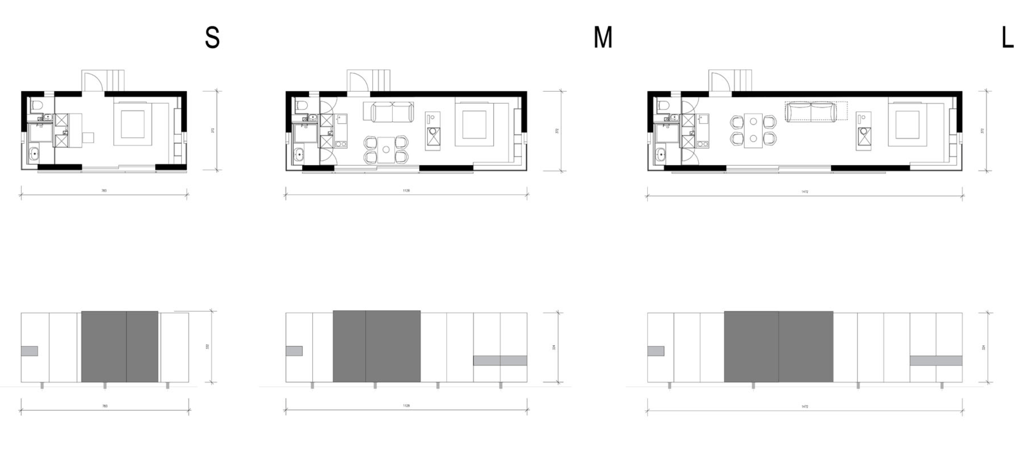 Se puede escoger entre 3 tamaños diferentes (L, M, y S), donde cada uno de ellos viene con las inclusiones estándar. Con los módulos de Casa Invisibile es posible componer unidades residenciales más grandes, que respondan a diferentes necesidades familiares.