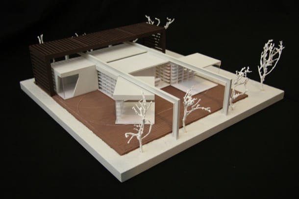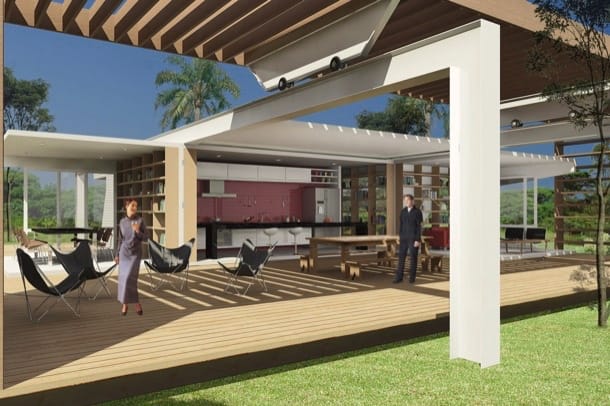 Las siguientes imágenes corresponden a una vivienda con pérgolas deslizantes, diseñada también por el mismo arquitecto. No es exactamente un prototipo de la Casa Tic-Tac, ya que no tiene habitaciones que giren para crear distintas configuraciones.