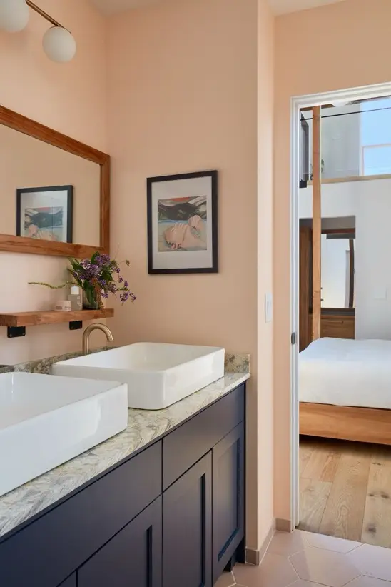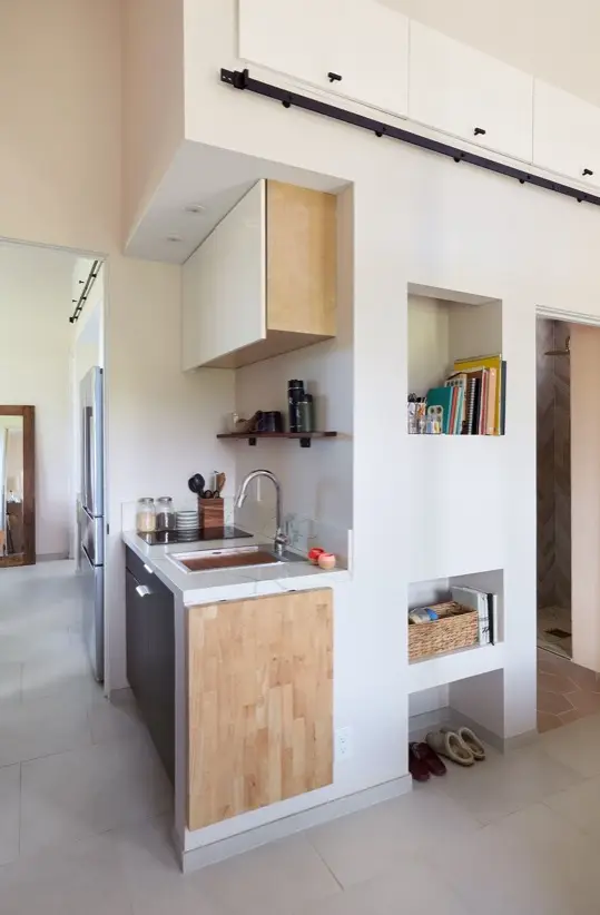 El núcleo de esta casa es su módulo central prefabricado de 15 metros cuadrados. Este núcleo contiene los elementos más complejos y costosos, como los baños y los servicios de cocina, lo que permite construir el resto de la casa de manera más flexible. Aunque la construcción se realizó en el sitio debido a la pandemia, sigue siendo un buen ejemplo del concepto «Core House» por su eficiencia y organización.