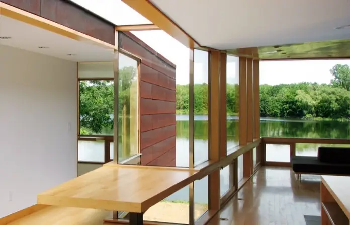 Situada a orillas de un idílico lago, la casa KOBY no es solo un logro arquitectónico. Es un santuario diseñado con el propósito de servir como estancia a familias que visitan un internado para jóvenes con problemas. La estructura, compuesta por dos módulos prefabricados, se organiza en forma de «X» abierta. Tiene un frontal principal que ofrece vistas panorámicas gracias a su fachada acristalada.