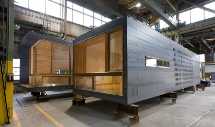 Lo más destacable de la casa KOBY es su proceso de construcción, pues se fabricó íntegramente en un taller de 11.000m2. Posteriormente se trasladó y colocó sobre una cimentación de hormigón armado en su ubicación final. Todo ese trabajo se completó en el transcurso de un solo día (ver vídeo). Este método minimiza el impacto ambiental en el sitio de construcción, y demuestra la eficiencia y precisión del diseño modular.