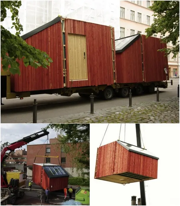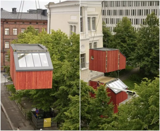 Este sistema modular partió de la necesidad que hay en Finlandia de proporcionar un alojamiento temporal a estudiantes. También puede servir para gente sin techo, o familias cuyo hogar se está reformando. Lleva el nombre de Kokoon, y fue desarrollado por estudiantes de Arquitectura.