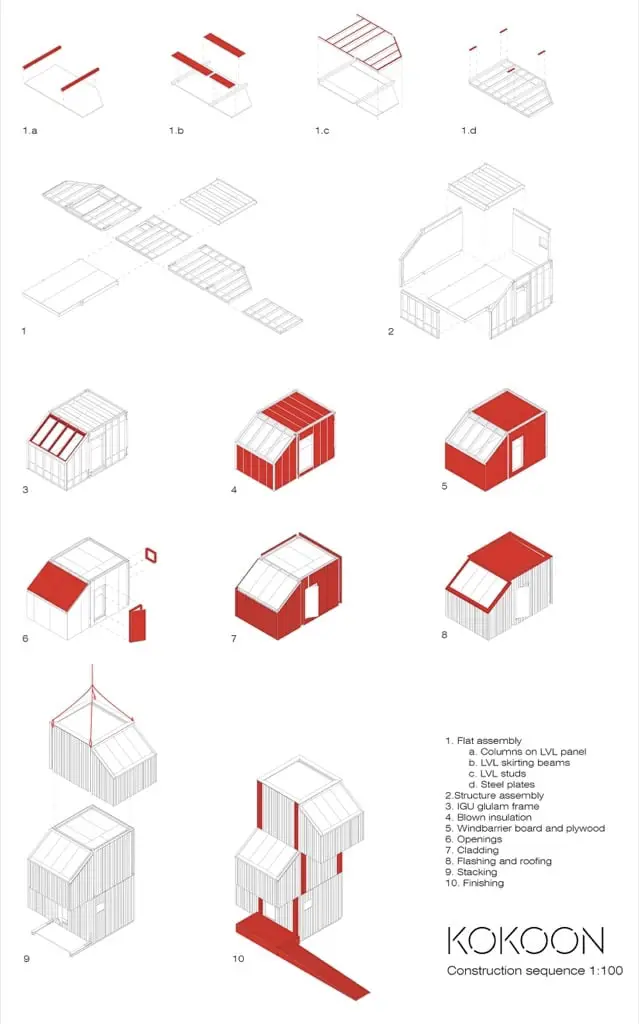 El sistema modular Kokoon fue creado gracias al Programa de Madera de la Escuela de Artes, Diseño y Arquitectura de la Universidad Aalto (Helsinki, Finlandia).