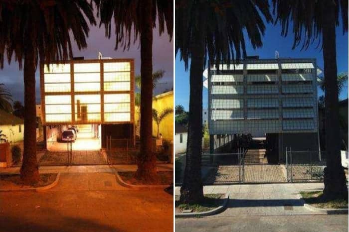 MCUBE es un extraño edificio prefabricado situado en Venecia (la de California). Tiene una estructura modular con cubos de 3 metros de lado, para permitir una distribución interior a medida y flexible. Su fachada es translúcida, de paneles de fibra de vidrio, por eso de día no se enciende bombilla alguna dentro.