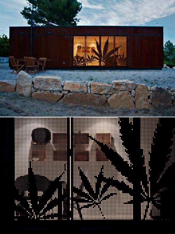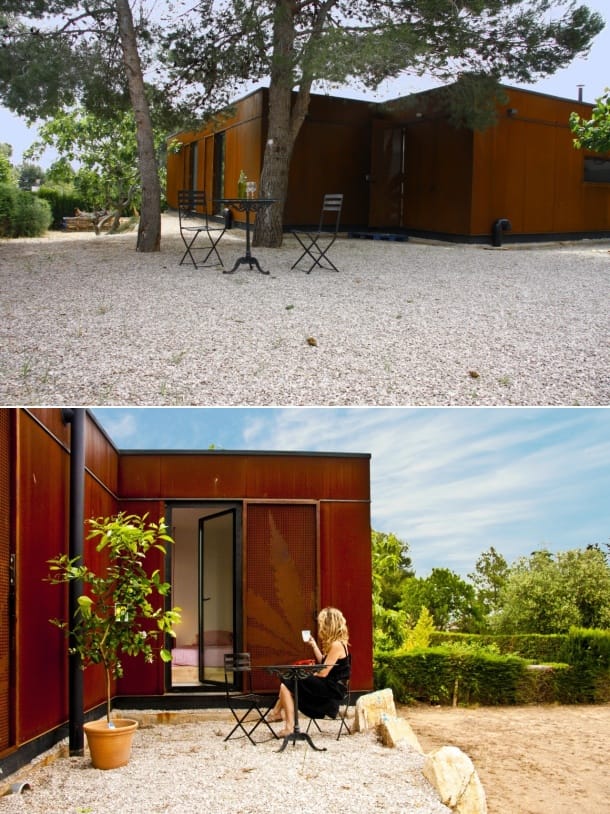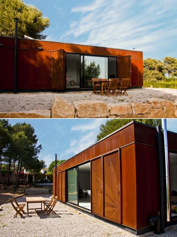 Menta House la hizo una empresa que habitualmente utiliza contenedores de carga. Pero en esta ocasión se construyó con módulos prefabricados metálicos. Fueron necesarios 4 módulos, con paredes compuestas por paneles de celulosa, con capa de material aislante ecológico, hecho a partir de lana de oveja.
