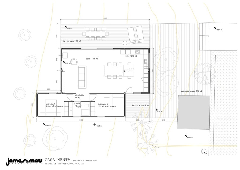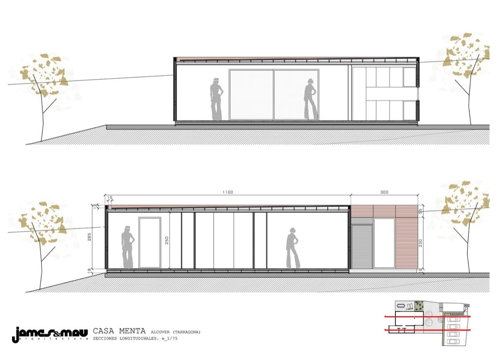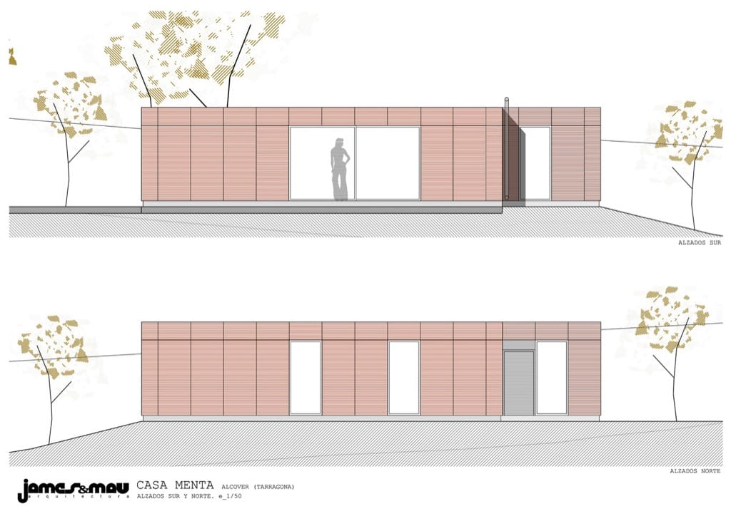 La Casa Menta se ubica en la provincia de Tarragona (España). Este proyecto se planteó para funcionar como casa de fin de semana, de diseño simple, y fácilmente utilizable. Según los arquitectos, esta vivienda funciona como una “caja viva” que se puede abrir, cerrar, encender, calentar, y enfriar de manera eficiente. Su volumen está compuesto por dos paralelepípedos desplazados, uno más ancho que el otro, y de una sola planta. Además este “cubo” racional permite una transición muy fluida entre el interior y el exterior.
