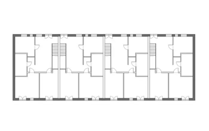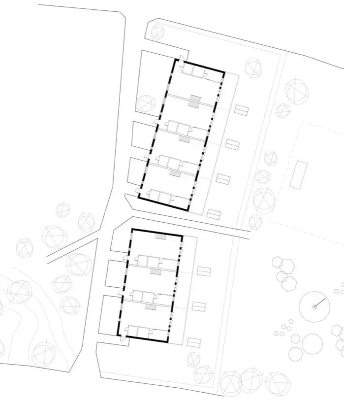 Uno de los mayores secretos de estas viviendas prefabricadas está relacionado con la orientación que adoptaron en el sitio. Cuentan los arquitectos que la parcela estaba delimitada por dos callejones sin salida, en dirección este-oeste. De haber colocado las casas alineadas a esas calles, el patio trasero estaría orientado al norte, algo poco deseable. En lugar de eso, crearon una calle privada dentro, pero abierta hacia el barrio. Esto aumentó la conectividad peatonal, y permitió que las casas adosadas tuvieran una orientación con mejor comportamiento solar pasivo.