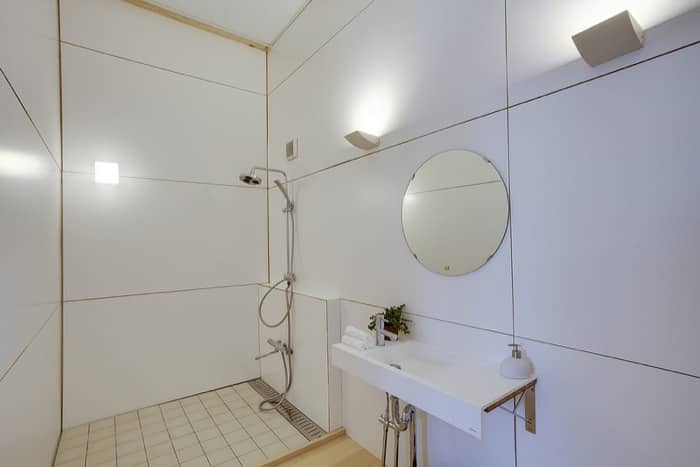 Probablemente el aspecto a destacar de este proyecto es el espacio tan digno que propone para las PERSONAS afectadas. Aquí supera a otras viviendas prefabricadas completas que ya hemos visto. Y es que esta casa en ningún momento se planteó como solución temporal, sino más bien como una «semilla urbana». Es una vivienda que no esconde su carácter prefabricado, pero también presenta un acabado elegante y neutro. La idea de dividir el espacio central con paneles móviles es una solución arriesgada, pero está muy bien resuelta.