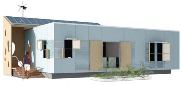 Las imágenes de este artículo corresponden a la SunShower SSIP House. Este proyecto consiguió el primer premio en un concurso de arquitectura sostenible. Se buscaba el diseño de una casa que pudiera estar desenchufada de las infraestructuras, y construirse fácilmente. Además debía ubicarse en zonas afectadas por desastres naturales o devastadas por la guerra.
