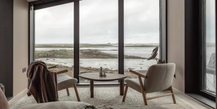 La Uist House se integra discretamente con su entorno. Se muestra como una obra artesanal individual, con formas llamativas construidas con materiales naturales. Las cubiertas siguen la pendiente del terreno, creando una composición armoniosa. Posee grandes ventanas enmarcadas, que fomentan un diálogo constante con el entorno exterior. La casa cuenta con rincones acogedores que proporcionan refugio durante las variadas y salvajes condiciones climáticas. Eso hace que sus ocupantes conecten con los ritmos naturales de la isla.