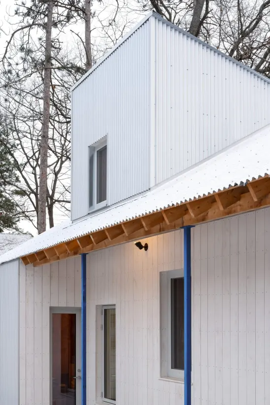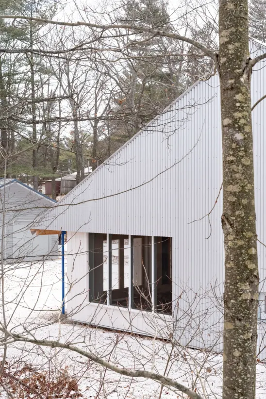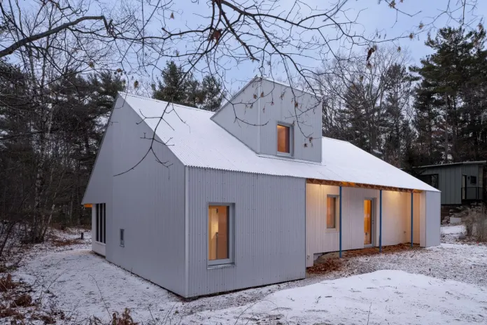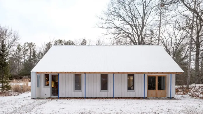 La selección de colores y materiales de la casa hace referencia a formas rurales de Ontario y a las casas de playa. Se integra armoniosamente en un área que mezcla granjas, así como residencias permanentes y de temporada. Cada detalle, desde los cáncamos soldados en columnas exteriores para tender ropa hasta los alféizares profundos utilizados como asientos, refleja un compromiso con la comodidad y la reducción del consumo energético.