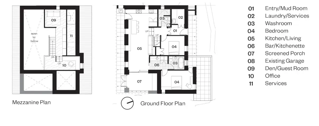 La estructura de la Unfinished House revela un marco de construcción sin sofisticaciones, donde no se utilizan sofitos para ocultar áreas estructurales como la parte inferior de voladizos. Esta honestidad en el diseño refleja una belleza cruda y esencial que es testigo de una estrategia de construcción prefabricada innovadora para una vivienda de tres dormitorios y dos baños. Dotada de una envoltura de alto rendimiento y una base de bajo carbono, la casa es un modelo a seguir en términos de eficiencia energética y reducción de impacto ambiental. La casa no tiene sótano para mantener su huella de carbono al mínimo.