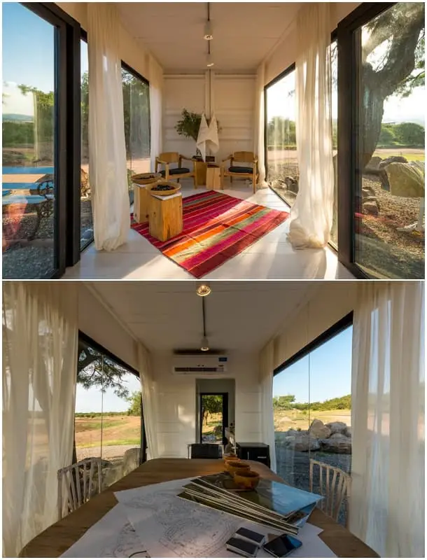 En resumen, este proyecto es un excelente ejemplo de cómo un contenedor de carga se puede transformar en un espacio funcional y atractivo. Con grandes ventanas, una decoración cuidada, y un entorno bien planificado, la oficina de ventas de Estancia El Terrón cumple su función. Además se integra armoniosamente con el paisaje circundante.