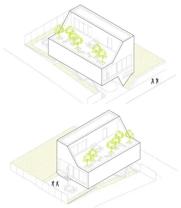 El proyecto se fabricó en una nave industrial, y luego se transportó al sitio. Todo el proceso duró menos de tres meses. El uso de contenedores de carga simplificó bastante todo el proceso, porque las dimensiones del módulo se ajustaban al volumen edificable de la parcela.