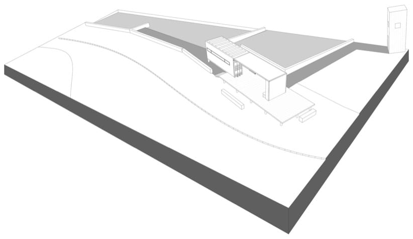 La cubierta del contenedor es transitable, y se ha acondicionado con una capa de grava y tablones de madera. Esa terraza superior sirve de mirador, y como solarium.