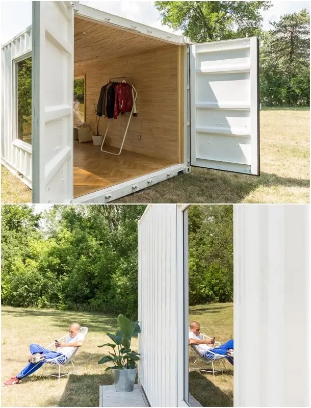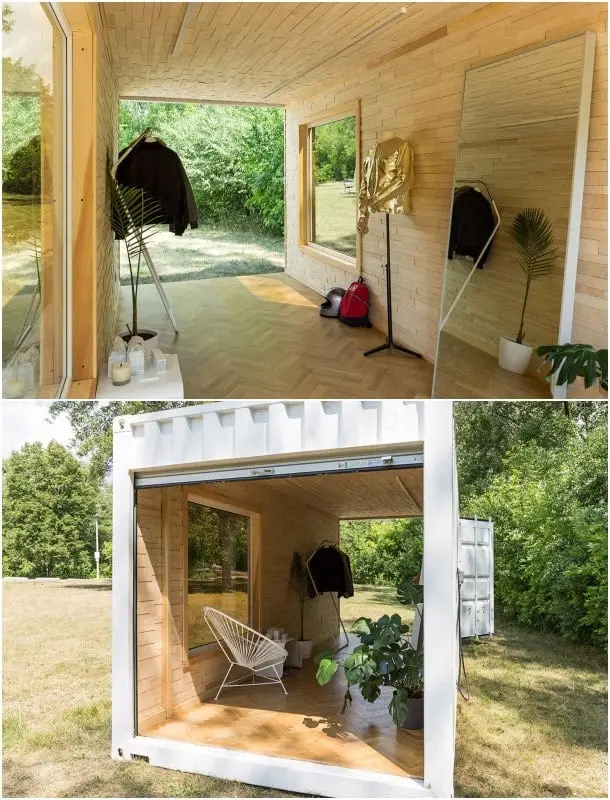 Esta boutique contenedor requirió una inversión mínima, lo cual subraya el ingenio de la marca en maximizar recursos sin sacrificar impacto. El diseño del contenedor fue meticulosamente planificado para reflejar el ethos de Needs & Wants Studios: sofisticación con funcionalidad. Se realizó con un pequeño equipo de gente, como si se tratara de un trabajo de bricolaje. Entonces el contenedor de 20 pies se transformó en un espacio comercial, con entradas en ambos extremos. Posee además dos grandes ventanas de vidrio espejo que aportan luminosidad y amplitud.