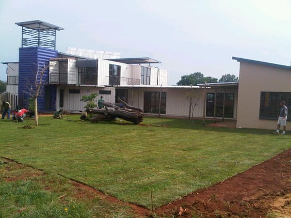 Para la construcción del centro de acogida NJCH se reutilizaron diversos contenedores marítimos de 40 pies. Este método resultaba más barato que los sistemas convencionales, realizados con ladrillo y mortero.