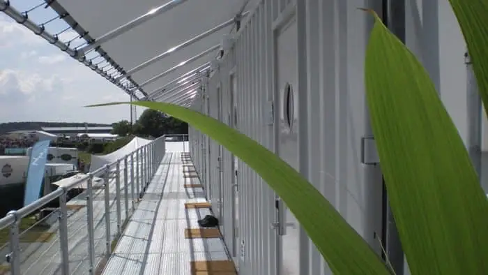 En un gran evento o festival no siempre habrá suficientes plazas hoteleras. Además, a mucha gente le resulta molesto dormir en tienda de campaña. Por eso no debe de extrañarnos en absoluto el éxito de iniciativas como las de SnoozeBox. En un tiempo récord es posible montar un hotel container con cómodas habitaciones. Lo consigue gracias a las ventajas de transporte y posibilidades que tienen los contenedores de carga de 40 pies.