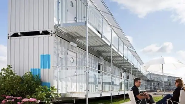 Este hotel container puede montarse con capacidad desde 40 hasta 400 habitaciones, con contenedores situados en una planta, o apilados. Además puede tener espacios destinados para reuniones, y zona de restaurante-bar, todo ello enviado por camiones, y montado en un par de días.