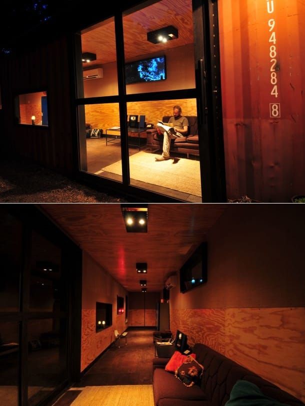 Alan Stulberg es un mecánico de motocicletas que estuvo años dándole vueltas a la idea de construirse su propio estudio. Así que un día realizó unos bocetos, y cinco meses más tarde terminó la construcción del Studio POD. Alan partió de un contenedor de carga, y lo transformó en el patio trasero de su casa, Austin (Texas). Ese módulo container se convirtió es un acogedor espacio que utiliza para las creaciones de él y su novia. A juzgar por las fotos, todo parece indicar que se escogió un contenedor de 40 pies, del tipo high-cube, que es un poco más alto. Sobre sus muros se abrieron diferentes huecos, con el fin de definir las ventanas y una puerta de acceso lateral. El Studio Pod conserva el aspecto exterior del container, y casi todo el trabajo se realizó en su interior.