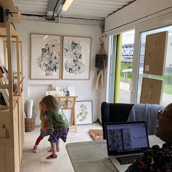 Exteriormente mantiene el aspecto corrugado de los contenedores marítimos, pero pintado en un bonito color verde lima. La zona de exposición se sitúa en el camino de acceso. Esta galería de arte se consiguió juntando contenedores de 40 pies, puestos uno al lado de otro. Se entra a ellos a través de grandes huecos laterales, que se cierran con puertas metálicas enrollables. Posteriormente ese espacio se dividió, para crear diversos estudios de artistas y artesanos, que también funcionan como mercadillo.