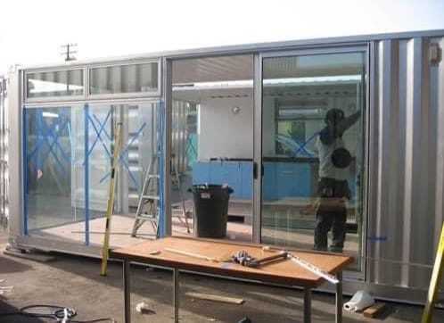 Los huecos para ventanas y puertas se recortan en la fábrica. Si fuera necesario, también se eliminan laterales completos de los contenedores. De esa manera se pueden realizar agrupaciones que ofrezcan mayor espacio. Luego se introducen materiales aislantes, instalaciones, revestimientos, armarios… Así hasta completar modernas viviendas containers.